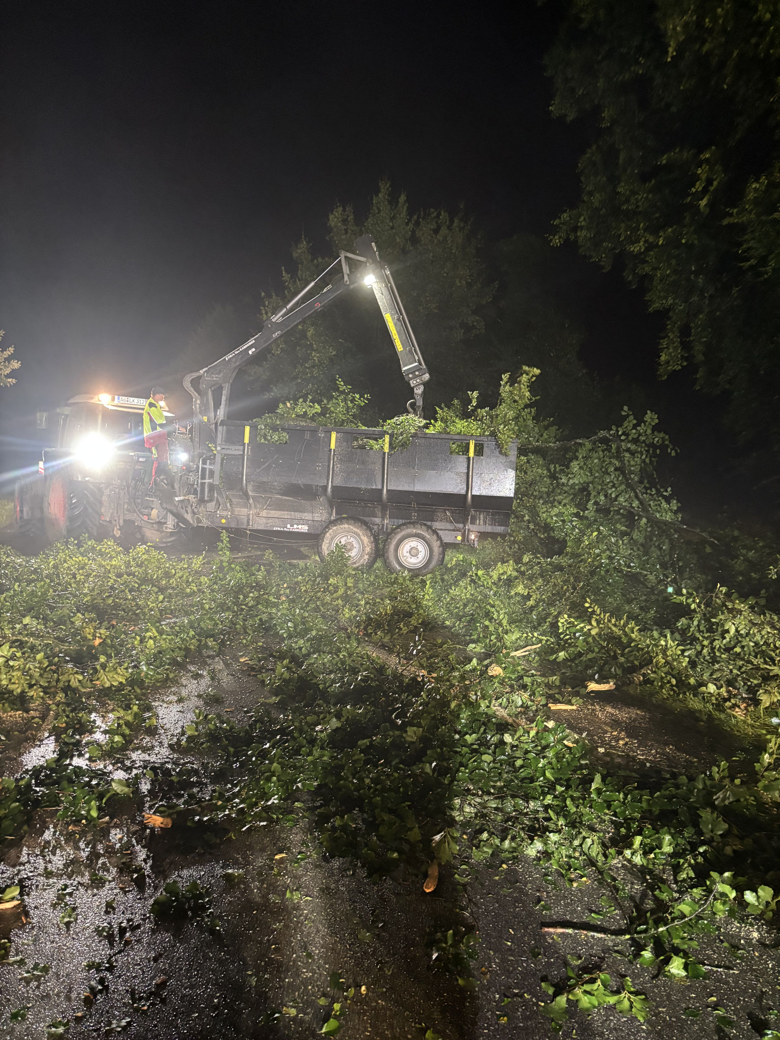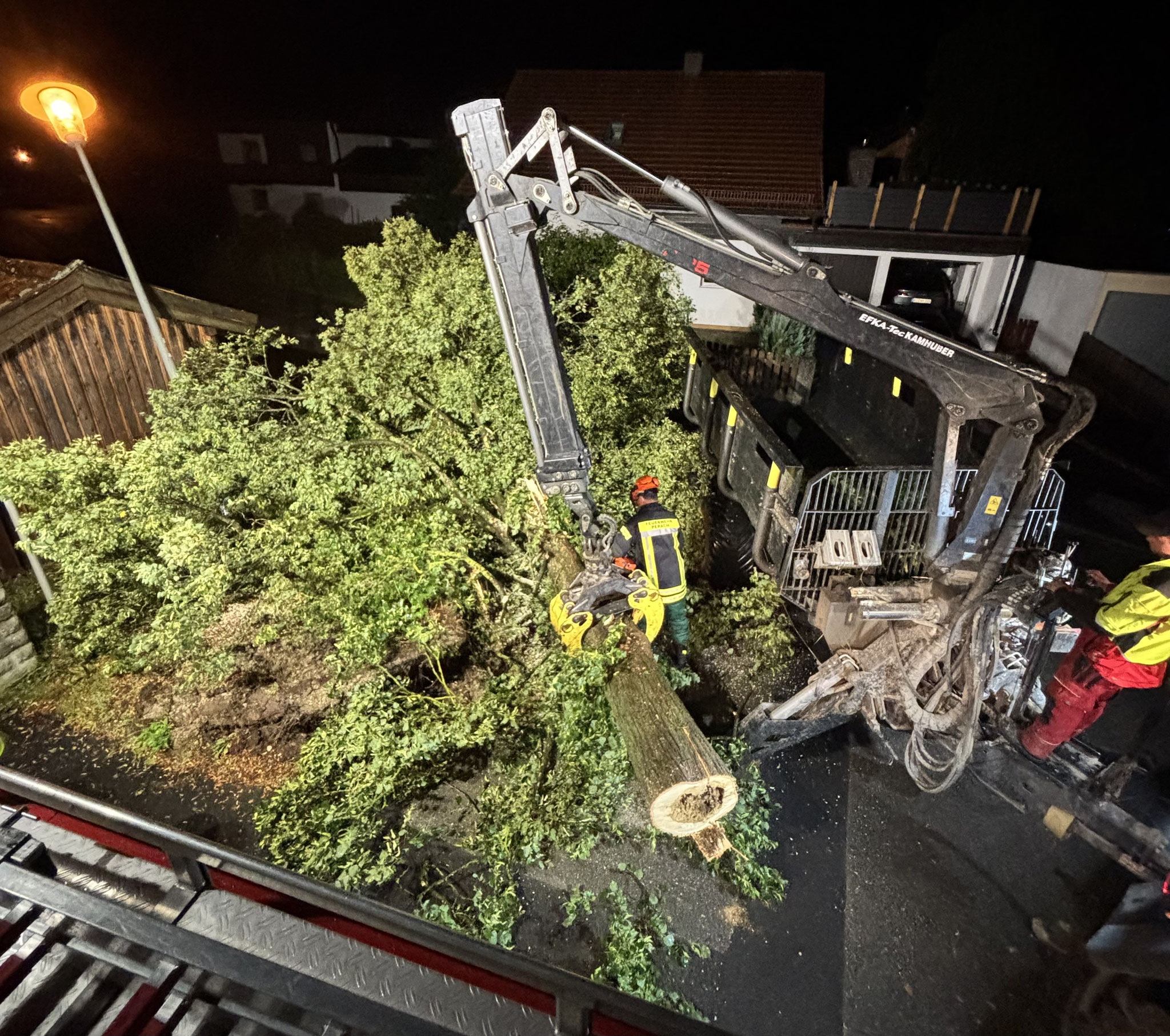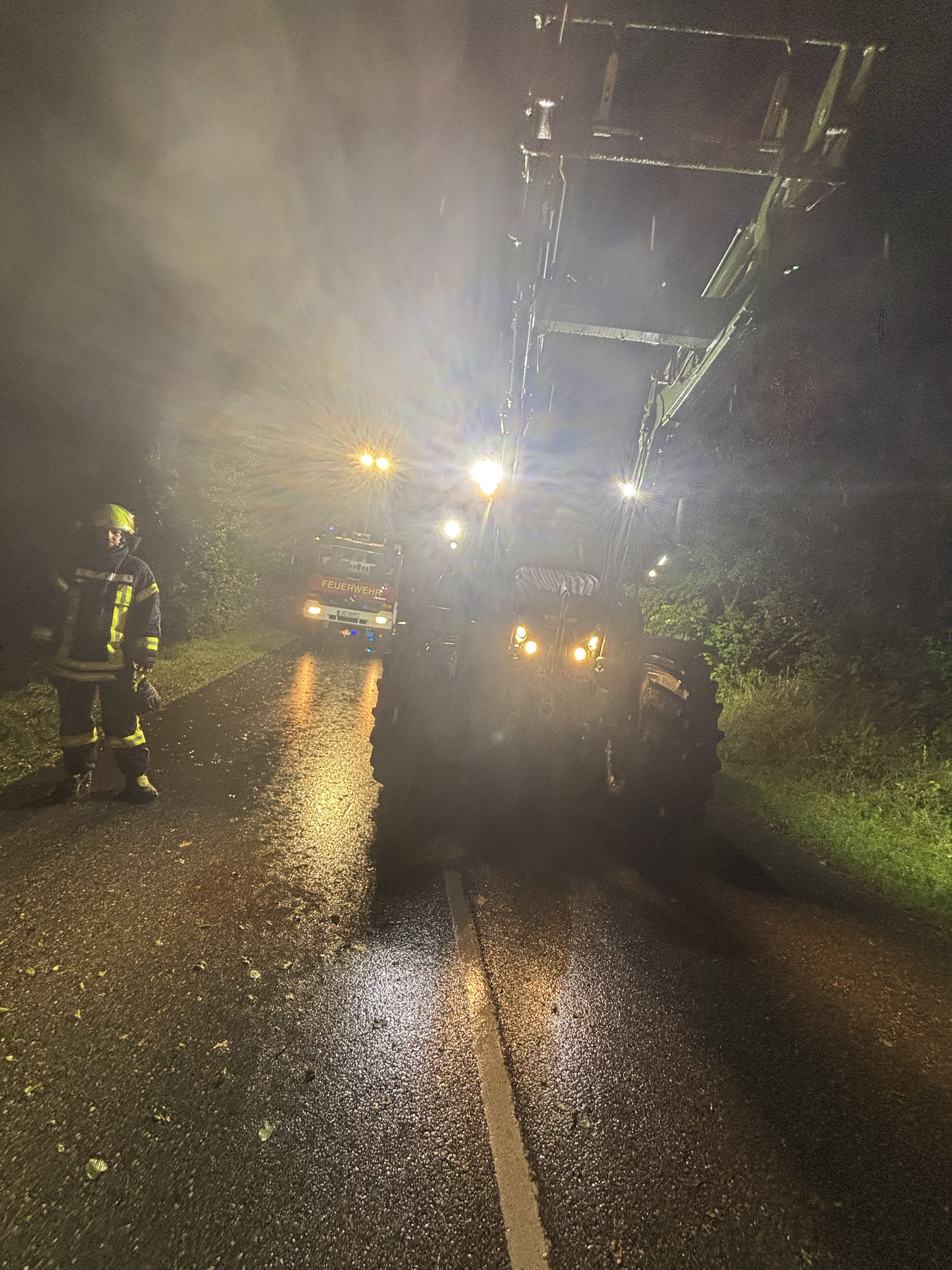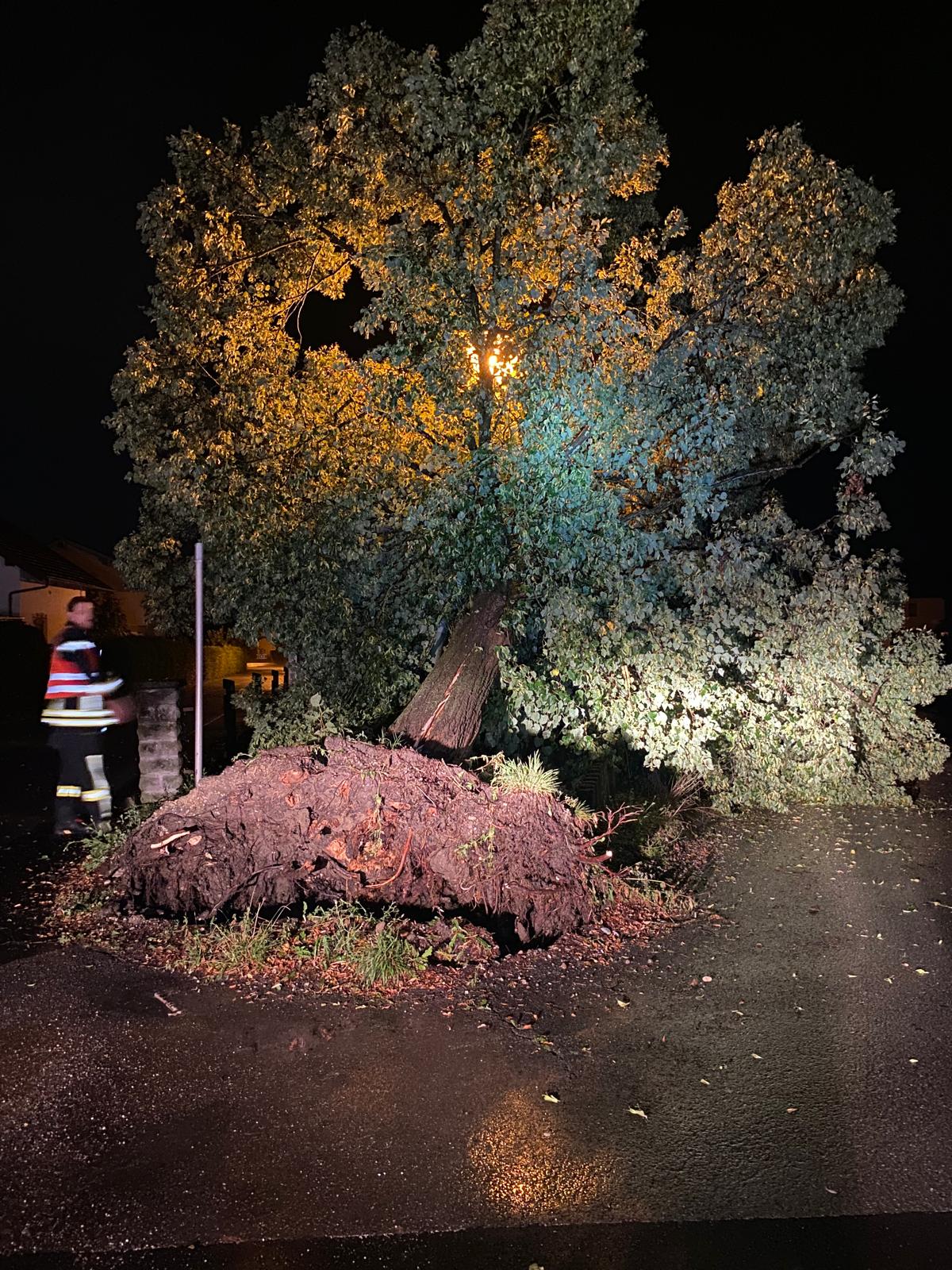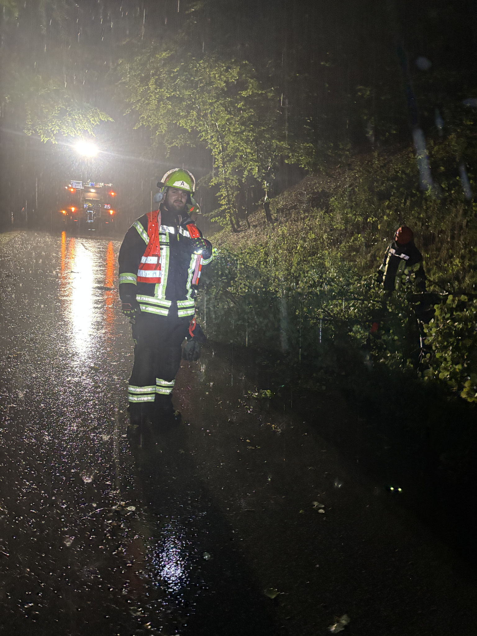 Freitag Nacht wurden wir bei einem heftigen Unwetter zu einem Baum über die Fahrbahn alarmiert. Wir stellten im Anschluss im gesamten Ortsgebiet mehrere Bäume über den Straßen fest. Bis 5 Uhr morgens fertigten wir mehrere Einsatzstellen ab.